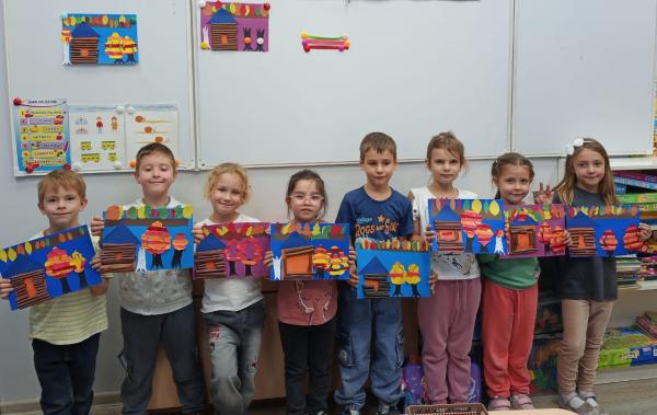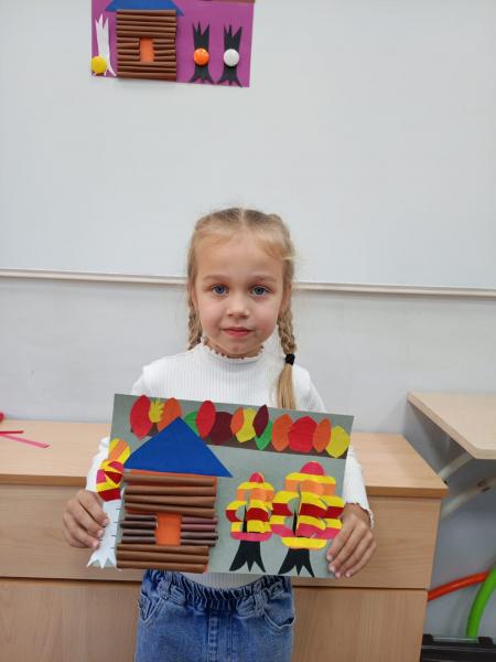В объединениях «Радуга» и «Эрудит» под руководством педагога дополнительного образования Ломакиной Ирины Алексеевны учащиеся познакомились с разными способами работы с бумагой и создали удивительные картины избушки на окраине осеннего леса в технике аппликации.