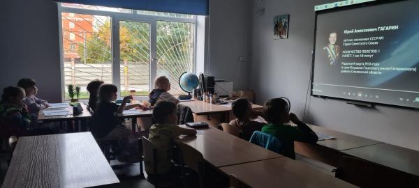 Гаянэ Оганесовна Ядикарян познакомила учащихся объединений «Каллиграфия», «Логопедия», «Игры разума» с покорителями звездного неба: Юрием Гагариным, Валентиной Терешковой, Алексеем Леоновым. Ребята посмотрели фильм «Наша Вселенная», показ которого был приурочен ко Всемирной неделе космоса. Просмотр фильма вызвал живой интерес, плавно перешедший в дискуссионную беседу.