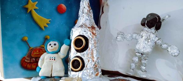 Итогом космического путешествия традиционно стала творческая часть занятия, которая была посвящена изготовлению из подручных материалов космического корабля и космонавтов.